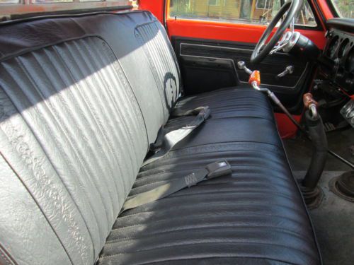 I want you to know exactly what you are buying. With this in mind, I will go over all of the problem area on the truck. This is a good running, driving truck, but it is "driver" quality. 1. The new paint is in the original color, but there is some over-spray on the rubber seals. I was planning on replacing the seals so the over spray was not a concern when I had the truck painted. 2. The rear bumper is in pretty good shape, but it is missing the rear bumper brackets. The rear bumper and better arm rests come with the truck. 3. The truck had a factory PTO, and some of the parts are still attached to the transmission. These parts can be removed and (on or off) they do not effect the driving of the truck. 4. The bed has a painted on lining which looks good from a distance, but there are small dents in the bed and rear wheel wells. 5. The wiper arms are rough. If you have less than 5 positive feedbacks in your Ebay feedback score, please call or email me before bidding. |