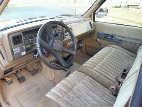 I didn't think I would ever sell her but here it she is! A supurb Kentucky '94 K1500 4x4 short wheel base with the desired and somewhat rare (in 1500's) Heavy duty NV4500 manual transmission and great color! This tranny is usually found in 2500 and 3500 rigs paired with big blocks and diesels, but GM did put some into 1/2 tons during those years. It also is a Silverado that is built a little different with super hard to find factory color keyed vinyl floorboard and roll up windows for deceased maintenance that many desire in older trucks. This truck has 9/10 or higher camel color interior that is nearly flawless! Headliner looks great and dash is not cracked anywhere! The truck is rust free and has only one dime sized dimple that I had a difficult time capturing in photo. Paint or clear coat is not peeling anywhere. Body is super straight and paint looks good. Engine is strong and has good oil pressure. This trucked was owned by same fellow and wife for over 10 years and remained in his family after passing away. Then brother traded it in after keeping it a while due to not liking the stick shift. I've had this truck for 2 1/2 years and used it as daily driver. Its always has been garage kept and serviced regularly. The only reason I'm selling is I brought a newer 2500 and do not need 2 trucks. The tires have plenty of tread remaining. The rear end is the locking/ positive and not too low or high 3:73. The truck has an easy 171xxx miles and has never been abused or mudded. Sounds great with true duels from the manifold back with duel inlet/outlet muffler and hidden duel pipes that I terminated after the axle giving a clean look. The cruise does not work but could easily be fixed due to the simplicity of the system. The air conditioning needs charging and has leek somewhere, again a easy fix. I have all the manuals and 2 sets of keys. These trucks this nice go for a lot more than I'm starting and with these options probably a lot more! This truck has been in western KY since new! I have sold 3 vehicles on eBay over the years and thus far, all were very happy with purchases. Happy bidding and Merry Christmas!