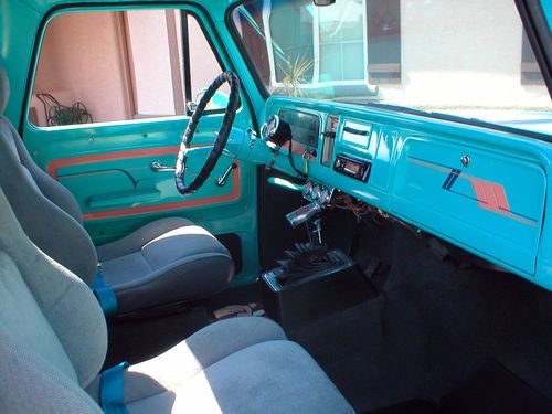 INTERIOR HAS GREY BUCKETS AND IS FULLY GREY CARPETED,SHIFTER CONSOLE,NEW GAUGES AND TACH, NEW AM/FM CD, ALL WINDOWS OPERATE FINE, NEW CHROME WINDOW AND DOOR HANDLES. NEW SEAT BELTS.