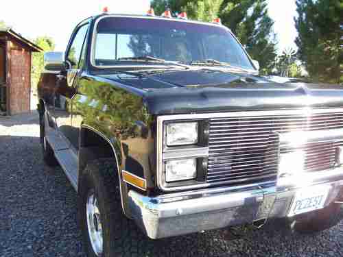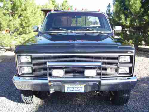 This is a 1983 Chevrolet K20 (8600GVW), that I have owned since 1985. 454HO GM crate engine (425hp/500ft.lbs. torque) with 8,000 miles, turbo 400, full floater rear end, 410 gears, Doug Thorley headers, dual 2 1/2" exhaust with H-pipe, Flowmasters, new MSD Streetfire distributor, replaced frt. and rr. brakes, drums and rotors, frt. calipers, rr. wheel cylinders, frt. and rr. brake hoses 8,000 miles ago, dual batteries, new P.S. pump and hoses, new fan clutch, radiator replaced 17,000 miles ago, A/C converted to R134, cruise control, gauges with factory tach, dual tanks, sliding rear window, tilt wheel, Class IV hitch, 7-way plug, electric brake unit,LED taillights, new tires and wheels, LT285/75R16 Cooper Discoverer AT3 mounted on Mickey Thompson Classic II, Sony AM/FM CD, speakers upgraded in dash and behind seat, 2 amps with 8" sub-woofer, one repaint, seat reupholstered, installed new headliner. Springs re-arced with add-a-leaf in front and overload spring added to rear. Truck has been well cared for, no rust, has been in Nevada since new. Truck is accident free and garage kept since 1985.