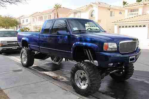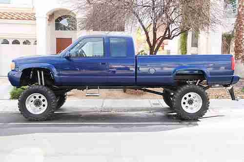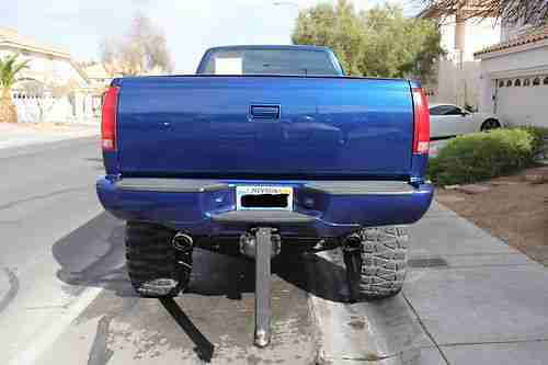 1990 chevy 2500 extended cab long bed. Completely custom with tons of extras. It is a real eye catcher. This thing will peal out those tires no problem. Whole drive train is pretty new with low miles. For drive train it has a built up 454 big block with A LOT OF POWER. Auto. trans. 14 bolt rear end with custom reinforcement. dana front differential also with custom reinforcement. these differentials are bullet proof. 12" lift with tons of work done to the steering. it handles amazing for a truck this tall. 20" welds wheels with a nitto mud grappler tire. Amazing sound system with two i believe 10" diamond subwoofers. It sounds great with a cd and aux cord. the AC works great. It has an escalade front clip which looks a lot better than the stock boxy front. I bought it with all the work already done. So i do not know all the specifics. Issues with the truck includes the paint on the roof (pic included), there are a few small dings on the driver side from kids egging it (it was tough to get a pic of that), It can not currently switch into 4 wheel drive (after lifting it they tried using the stock 4 wheel drive shifter. all you need to do is buy an aftermarket shifter. i priced them out around $400), the bushings in the doors are worn down so they do not close smoothly (I have the new bushings they just need to be replaced), and currently it is not starting due to a recent fuel delivery problem (while i was driving it, it just stopped running. The starter would crank the motor over but it would not start. I found out it was not getting fuel by checking the fuel line just before the fuel filter so i know its not a clog. i changed the fuel pump relay and eventually the fuel pump/sending unit. it is still not getting fuel for some reason.) But when it is running it is a monster. I always drove it in two wheel drive and still had no issues off roading with it. For any questions or concerns please call Mike at (702)235-7590.