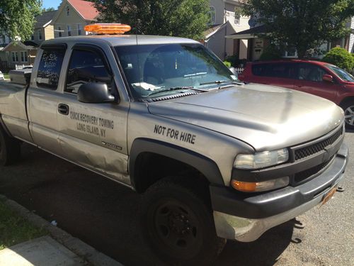 this is my 2001 chevy 2500hd extended cab pick up converted to a tow truck, it has a eagle claw hyrdrualic set up, power in and out and power up and down controls are inside the cab. both pumps are fairly new 1 leaks a little( most likely needs to be tightened somewhere) trucks starts right up and makes money! manual windows, cdplayer, a/c and heat, new serpentine belt,has new upper control arms new pitman arms new tie rods new driveshaft bushing has strobes tires with a lot of thread in the front rears might need replacing in a year. the truck is still registered and insured and I use it everyday, i was told to get a smoother ride to change the shocks and add helpers, I never cared because the truck is fine to me as is. the bed of the truck is very ugly and cracked, passenger door has damage but still opens fine, I used this truck to make money not to impress anyone, buyer must pick up in queens village ny 11428 truck is being sold as is. Winner of auction must pay full amount at auction end any questions please call or text me 347-939-3530 I am selling this truck only to buy a bigger one clean ny title has remote start 6.0 gas engine has back up camera but it needs to be fixed