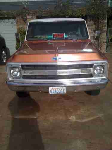 70 Chev pickup; custom 20 / 350 camper special with side tool compartment 160 K mile, runs great, automatic, bench seat with canopy.