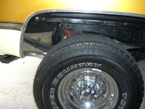 MOTOR REPLACED AT 78K MILES DUE TO INTERNAL ISSUES...WAS A CRATE LONG BLOCK..REINSTALLED FACTORY INTAKE AND EXHAUST MANIFOLDS, NEW FUEL PUMP, HOSES...ETC...ETC... SERVICED AT MEDFORD CHEVY DEALERSHIP SINCE BRAND NEW!! ALL ROUTINE MAINTENANCE DONE SINCE NEW AWESOME RUNNING 454 MOTOR...STARTS, RUNS AND DRIVES LIKE A NEW TRUCK RANCHO RS5000 SHOCKS HAS NEW OIL COOLER SMOG LEGAL WITH THE SMOG TUBES IN CASE YOU LIVE IN A STATE WITH SMOG LAWS. IF YOU DON'T, THEN PLUG THE MANIFOLDS AND REMOVE THE STUFF AND SELL THE SMOG EQUIPMENT FOR BIG MONEY!! THIS IS A SMOG LEGAL VEHICLE FOR YOU CALIFORNIANS TH400 AUTOMATIC TRANSMISSION THAT SHIFTS LIKE NEW...VERY SMOOTH....NEVER EVER HAD A SHIFT KIT WHICH DESTROYS THINGS. AWESOME 4.10 GEAR RATIO FOR SOMEONE WHO NEEDS TO TOW FACTORY 205 4WD TRANSFER CASE....QUIET LIKE A CHURCH MOUSE DEALER INSTALLED WHEN NEW AUXILLERY MECHANICAL BRAKE CONTROLLER...NOT THE ELECTRIC PIECE OF SHIT ONE THIS IS A TRUE ONE TON 4X4 WITH FULL FLOATER REAR AXLE AND DANA 60 FRONT AXLE...REAR AXLE PINION SEAL HAS SLIGHT SEAP SEE PICTURES OF CHASSIS.....WOW!! NEW BRAKES ALL THE WAY AROUND...INSTALLED 2 YEARS AGO AND MAYBE HAVE 5000 MILES ON THEM RANCHO RS5000 SHOCKS ALL THE WAY AROUND...THESE ARE NOT THE CHEAP ONES BRAND NEW DUAL EXHAUST FROM BEHIND DROP TO BEHIND THE WHEELS WITH NICE CHROME TIPS TOO BRAND NEW TOYO OPEN COUNTRY A/T TIRES...MAYBE HAVE A 1000 MILES ON THEM....$1685 INSTALLED INCLUDING ALIGNMENT AND TIE ROD ASSEMBLY(STEERING BAR AND TIE ROD END) NICE CHROME WHEELS WITH CHROME CENTER CAPS BRAND NEW CHROME EXTRA LONG 2.75" LUG NUTS...LOOKS AWESOME