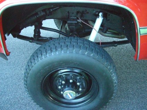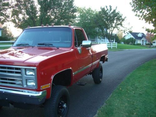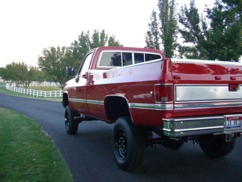 SERVICED AT CHEVY DEALERSHIPS SINCE BRAND NEW!! ALL ROUTINE MAINTENANCE DONE SINCE NEW AWESOME RUNNING 454 MOTOR...STARTS, RUNS AND DRIVES LIKE A NEW TRUCK 4" SOFT RIDE LIFT INCLUDING SPRINGS, PITMAN ARM BLOCK AND RANCHO RS9000 SHOCKS....MIGHT HAVE 5K MILES SINCE INSTALL REAR AIR BAGS WITH 3' AIR HOSES FOR EASY FILL UP HAS FACTORY OIL AND TRANSMISSION COOLERS WITH FACTORY AUXILLERY COOLING FAN CERAMIC SMOG LEGAL HEADERS WITH THE SMOG TUBES IN CASE YOU LIVE IN A STATE WITH SMOG LAWS. IF YOU DON'T, THEN PLUG THE HEADERS AND REMOVE THE STUFF AND SELL THE SMOG EQUIPMENT FOR BIG MONEY!! THIS IS A SMOG LEGAL VEHICLE FOR YOU CALIFORNIANS TH400 AUTOMATIC TRANSMISSION THAT SHIFTS LIKE NEW...VERY SMOOTH....NEVER EVER HAD A SHIFT KIT WHICH DESTROYS THINGS. AWESOME 4.10 GEAR RATIO FOR SOMEONE WHO NEEDS TO TOW FACTORY 205 4WD TRANSFER CASE....QUIET LIKE A CHURCH MOUSE DEALER INSTALLED WHEN NEW AUXILLERY MECHANICAL BRAKE CONTROLLER...NOT THE ELECTRIC PIECE OF SHIT ONE THIS IS A TRUE ONE TON 4X4 WITH FULL FLOATER REAR AXLE AND DANA 60 FRONT AXLE WE COMPLETELY CLEANED THE UNDERCARRIAGE WITH SOAP AND WATER AND SPRAYED IT WITH HIGH DOLLAR EPOXY AUTOMOTIVE BLACK. SEE PICTURES FOR DETAILS HE HAD THE FENDERS WELLS UNDERCOATED WHEN NEW WITH SUPER THICK UNDERCOATING....IT'S STILL ALL THERE!! NEW BRAKES ALL THE WAY AROUND...INSTALLED 2 YEARS AGO AND MAYBE HAVE 3000 MILES ON THEM RANCHO RS9000 SHOCKS ALL THE WAY AROUND...THESE ARE THE ADJUSTABLE HIGH DOLLAR SHOCKS NOT THE CHEAP ONES NEW DUAL EXHAUST ABOUT 5 YEARS AGO WITH VERY LITTLE MILES BRAND NEW DEAN TIRE AND RUBBER COMPANY 9.5" WILDCAT LT RADIAL TIRES..1000 MILES ON THEM....RECEIPT SHOWS $1285 INSTALLED INCLUDING ALIGNMENT WHEELS WERE MEDIA BLASTED AND PAINTED WITH HIGH DOLLAR BLACK AUTOMOTIVE EPOXY BRAND NEW CHROME EXTRA LONG 2.75" LUG NUTS...LOOKS AWESOME YOU ALSO GET HIS BIG CUSTOM MADE MUDFLAPS I REMOVED...THERE WERE ZERO ROCK CHIPS ALONG HIS TRUCK UNDER THE ORIGINAL CHROME MOLDINGS.....ZERO!! THEY WERE OLD MAN LOOKING BUT REALLY PROTECTED THE PAINT!!