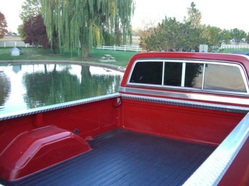 EXTERIOR: BODY LINES ARE STRAIGHT AND TRUE....SEE PICTURES BRAND NEW FACTORY COLOR BASE COAT CLEAR COAT PAINT $3800 PAINT JOB....LOOKS AWESOME!! BRAND NEW CHROME BODY SIDE TRIM / MOLDINGS BRAND NEW CHROME FENDER WELL TRIM / MOLDINGS BRAND NEW "SILVERADO" DOOR EMBLEMS....FACTORY FENDER HOLES WERE WELDED CLOSED AND TALKED HIM INTO PUTTING THE NEWER LOOKING "SILVERADO" EMBLEMS ON THE DOORS INSTEAD...LOOKS AWESOME!! POLISHED ALUMINUM BED SIDE CAPS AND TAIL GATE CAP BRAND NEW RUBBER BED MAT....THE THICK ONE NOT THE CHEAPIE ALL TRIM AND LIGHTS WERE REMOVED PRIOR TO PAINT BRAND NEW CAB OVER LIGHT RUBBER GASKETS FOLLOWING PAINT BRAND NEW TAILGATE LAMPS FOLLOWING PAINT FACTORY CHROME FRONT AND REAR BUMPERS STILL SHINE LIKE NEW NEWER HALOGEN HEADLAMPS TOO...TOSSED THE FACTORY SEALED BEAM LAMPS IN THE TRASH BOUT A YEAR AGO ZERO DENTS ON BED FLOOR OR BED SIDES ZERO HOLES DRILLED IN BED FLOOR
