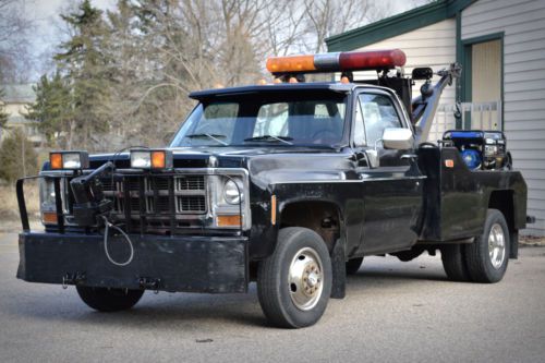 Model: c30 Year: 1980 Millage: 104,000 Engine: 5.7l v8 Transmission: manual Color: black Description: Challenger bed with pto winch Body guard hydraulic wheel lift Power max generator with air compressor Us General tool box Western show plow Federal signal aerodynic 5.7l 350 cheverolet v8 4 wheel drive Vehicle runs and drives. Cruises on highway well. Has new rear tires. Plow is western cable style plow with side to side movement. Winch is pto driven from the engine. Wheel lift is electric/hydraulic and can be opperated with the vehicle on or off. Generator/compressor all function and can be used for air tools or inflating tires. Toolbox is lockable and stores all tools needed. There was a video that that showed some of it's equipment in use. Body and paint in good shape but not perfect , has rust/scratches/dents. Front tires only should be replaced , but are still useable/drivable. Come see the vehicle in person , with all the equipment on board the vehicle is ready to tow. And also plow in the winter! Vehicle is for sale locally and can be sold at any time during the auction. |