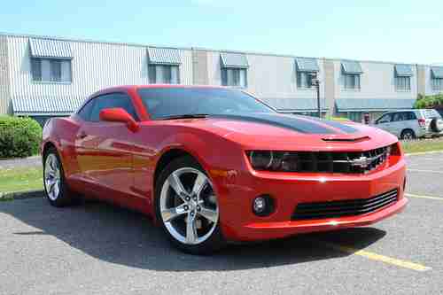 Up for sale is a very nice 2010 Chevrolet Camaro 2 SS/RS in Victory Red colour. The car is still on the CHEVROLET guarantee. It have only 27000 KM (about 16 700 Mi) on the odometer! It never saw winter (was stored in an heated garage). It comes fully equipped with the optional Rally Sport package included! It features a 6 speed manual transmission with the LS3 engine, 6,2 Liter 426 HP. It is VERY FAST! It is also equipped with automatic HID XENON headlights, fog lights, optional polished aluminum 20 inches mags installed, hi-performance P-ZERO tires, matte black rally stripes, powerful Brembo brakes, lots of airbags, electric heated leather seats, leather shifter and leather steering wheel, bluetooth connectivity, USB plug, commands on the steering wheel, mudguards specific to the Camaro, premium hi quality speakers from BOSTON ACOUSTIC, 4 rally gages on the centre console, air conditioner, power heated mirrors, tinted power windows, factory installed alarm system, remote doors and trunk, optional trunk net included, anti-theft traceable codes on major car parts as insurances requires, XM satellite radio ready, On Star ready and so much more!
