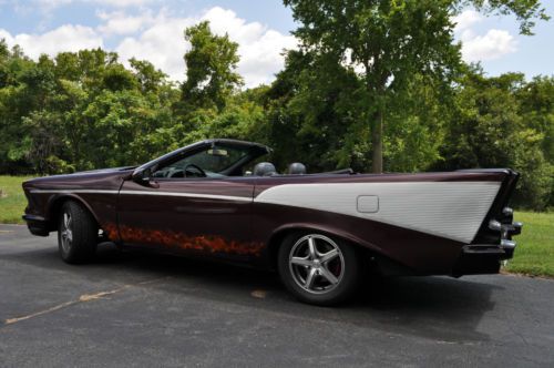 For sale is this unique, one of a kind Camaro Z28 Convertible. This 1995 Camaro was re-bodied to look like a 1957 Chevy Bel Air. All the looks of a classic car but with all the modern comforts like power windows, power seats, air conditioning and a fabulous powerful LT1 Corvette engine. If you want to be noticed, this is the car for you! New $11,000 custom paint with airbrushed “real fire” on the rockers, Chevy emblem on the hood. The custom airbrushed fins complete the unique look of the 1957 Chevy. The door handles have been removed to give the car a streamlined appearance. The doors can be opened with either the re-programmed remote control or by a hidden button. Dark grey leather interior, and new tires and wheels to complete the look. Over 600 hours in completing this exclusive, artistically crafted automobile. Ready to roll! All this for an unbelievable starting price of only $24,495 and NO reserve. Good luck bidding! Car is for sale locally and seller reserves the right to end the auction early. |