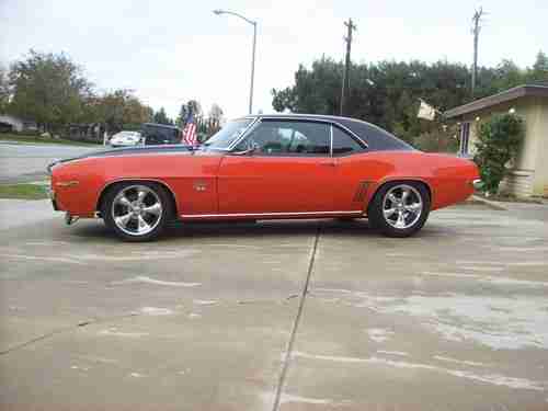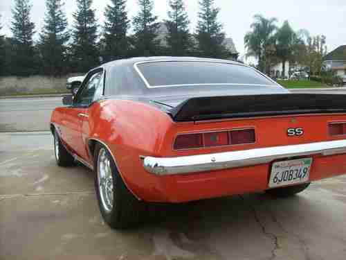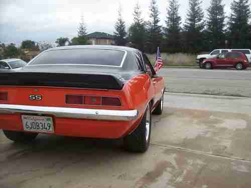 I HAVE A 1969 CAMARO SS 350/300HP 4 BOLT MIN 4 SPEED CAR IT IS A BEAUTIFUL CALIFORNIA CAR THIS WAS A GROUND UP BUILT IT HAS 1500 HUNDERD MILS ON THIS BUILT IT HAS THE ORIGINAL L48 350 MOTOR IT IS 30 OVER AND THE 4 SPEED IS AND M 20 REBUILT WHIT NEW HURST SHIFTER AND THE REAR END IS AND 12 BOLT PIS CURRIE ENTERPLSES REBUILT IT WHIT CURRIE PERFORMANCE AXLE AND DISC BRAKES RING AND PINION IS AND 12 BOLT 3:42 GEAR WHIT A TRUE TRAC DIFFERENTLAL AND 30 SPLINE AXLES AND THE PANIT ON THIS CAR IS 2 YEARS OLD AND LOOKS VERY NICE IT IS PPG B/C C/C PANIT THE CAR HAS ALL NEW COMPLETE WIRING FROM AMERICAN AUTOWIRE IN THIS CAR AND ALL NEW GAUGES IN THIS CAR TO IT ALL SO HAS NEW VINTAGE AIR IN IT TO AND ALL NEW UPHOLSTERY TO I HAVE OVER 55K IN THIS CAR YOU CAN NOT BUILT THIS CAR FOR MY RESERVE SO IF YOU HAVE QUETIONS PLEASE CALL ME AT 661)378-0401 OR YOU CAN EMAIL ME I HAVE THE CAR FOR SALE LOCALLY TO AND I RESERVE THE RIGHT TO END THE AUCTION EARLY MAKE ME AND GOOD OFFER FOR IT EVERYTHING ON THE CAR WORKS GUST AS IT SHOULD NO PANIT CHIPS OR DENTS OR SCRATCHES ON THIS CAR