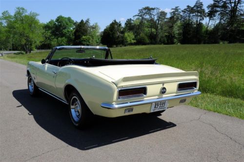 Restored original 1967 Chevrolet Camaro RS/SS 350 Convertible. Rare combination of RS trim package with SS performance package with power convertible top. Equipped with original Muncie M21 4-speed manual transmission with Hurst shifter with original 3:73 12-bolt rear. Car has power steering, power brakes, and power top. Paint is original butternut yellow with bumble bee black striping. Standard interior black with center console with rare 3 gauge cluster Current owner is 3rd owner and has owned the this car for 34 years. Garage kept and maintained with pure original factory quality. Engine was rebuild and has less than 10k in the last 20 years. During rebuild short block was replaced with same from early 1970 Camaro. All other engine components original 1967. Car runs great. Car has original hide-away headlights that work great as well. Original chrome engine detail. Arrange for inspection prior to bidding as needed to confirm details. All sales final. Call 703-929-9299
