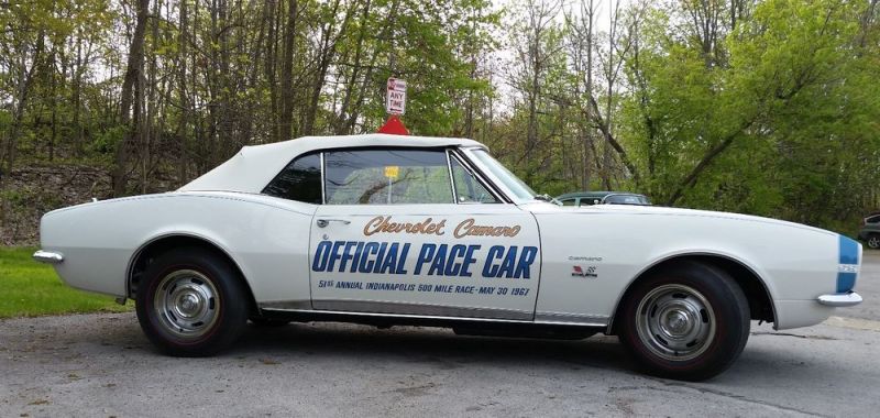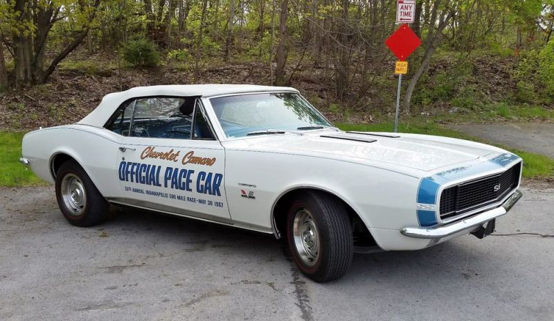 1967 Camaro Indy Pacecar for sale. This car has been completely and professionally restored rebuilding each original, numbers matching component including the "born with" original 396-325 HP engine and turbo 400 transmission, the complete 4 piston power disc brakes, alternator, distributor, carburetor, and 12 bolt 3:31 positrac rear axle with the square traction bar. Each and every component is correctly dated and finished right down to the DG coded 14" rally wheels and original exhaust manifolds. The complete interior is all new including an NOS GM well liner. It has a power top and power steering. Finished off with Red line tires and a Gardiner exhaust system, The car runs and drives great and everything works, This original car is registered in the Pacecar registry and would make a great addition to any collection or a fantastic parade vehicle with great investment potential. Only a couple dozen of these cars were ever built.