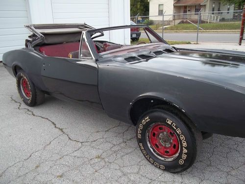1967 Camaro R/S Convertible optioned with 2LG ( 4-speed, center console) 3L (Rally Sport Z-22) 5Y (Deluxe Seat Belts). Original color Tuxedo black, red standard interior, white top. Nice solid car with excellent sheetmetal, I have the original parts removed from the car including F&R seats, console with guages, speedo and tach assembly, R/S headlight assemblies, etc. The quarters, doors, fenders, hood are all excellent. The trunk floor is also excellent. At some time in its life someone replaced the drivers side floor pan. Did a nice job on top but the bottom needs some finish work. This car was born a 4-speed car but was converted to an automatic with the correct pedal assembly. It has an automatic shifter included. I am selling this car with a unassembled 396 ( #3965272) and a turbo 400 transmission. Would be a beautiful car in this color combination.
