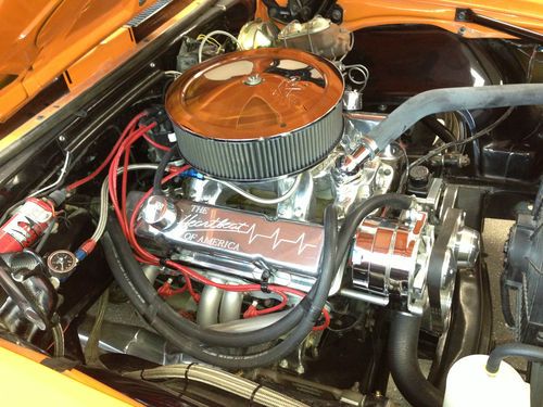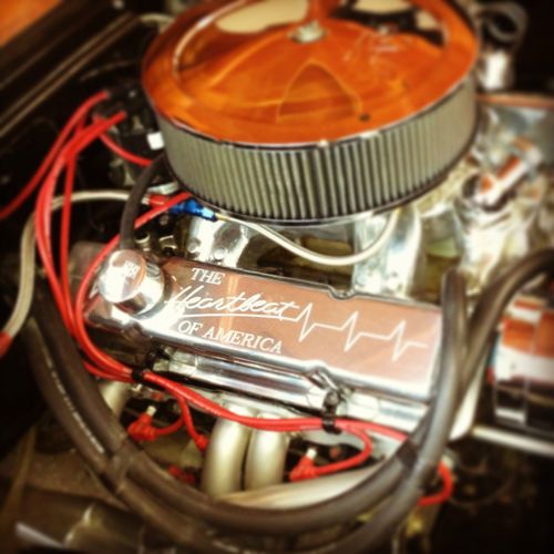 -Has a strong 350 V8 smallblock with High Energy Series Comp Cams, Edelbrock Air Gap Polished Intake, BG Street Demon Carb, Hooker Ceramic Headers, Flow master 2 1/2" Exhaust, MSD Ignition, and an Aluminum radiator with an electric fan.