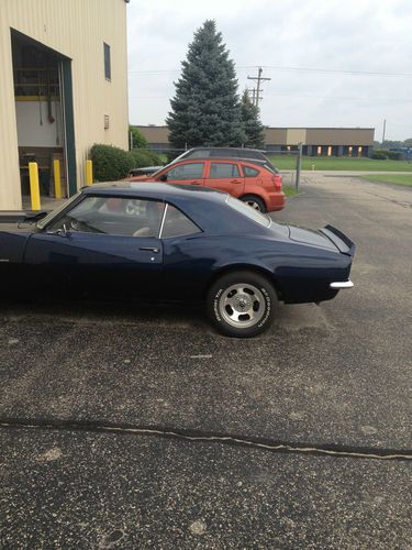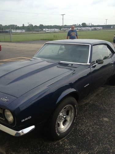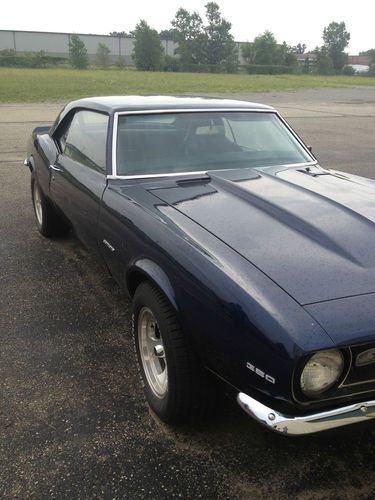 This is a great looking 1968 Camaro. I bought it a couple years ago and just went through a divorce so its time to go. I am letting this car go for $5,000 less than i paid when i bought it. It runs and drives very good. It has a new floor pan and it looks as if the rear fenders where replaced. I do not know anything about the frame other than i was qouted $3,000 to fix it. I guess the Rockers are Bad? I was told the engine was a new crate engine when i bought it and the motor was bored 30 over. The motor looks very good so i believe this to be true? It has a very small oil leak around the oil pan( very very light). It has Crane cams and gear to gear timing. The car runs and drives great. If the car sat for a week the battery would die? I bought a new battery but I have not drove it to see if thats fixed it. If not the alternator or starter is bad? This car is old and there are things like the handles for rolling the windows up and down that I have but are missing the pins to hold them in. I am far from a mechanic!! so be gentle with the questions. Oh.. this was not a SS but a 6 cylinder from the factory but it is a real 1968 Camaro. The VIN plate is missing but the car has the VIN stamped on the Firewall. It is the factory stamp in the steel. The VIN plate may have fallen in the dash.