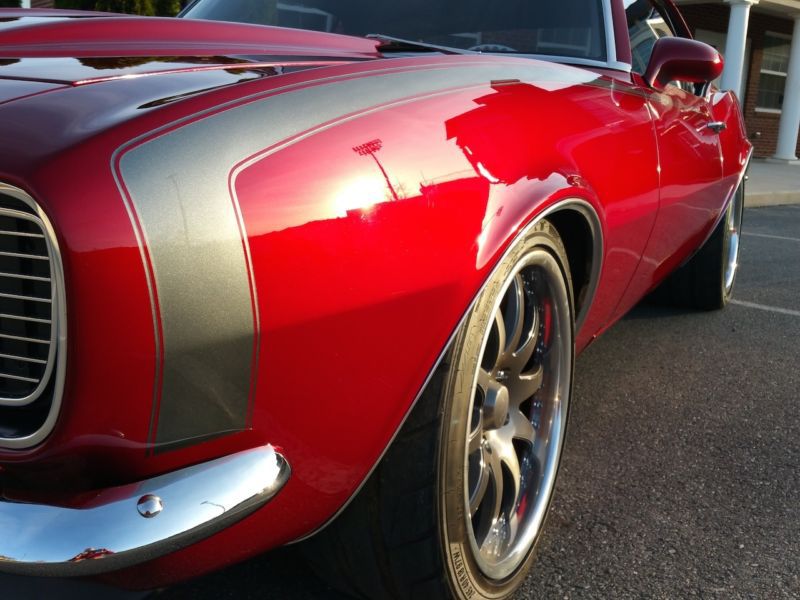 Brand new build, only 173 debug miles at this point. Lots of custom work including shaved and smoothed drip rails, door locks, firewall, and rear body seams, as well as a filled and smoothed dash pad. Beautiful custom leather interior with custom leather door panels and a one piece headliner. Have plenty of pictures I can share, check out the video below. Full specifications are below, but highlights include: 383 Roller with AFR heads, 200R4 Transmission, 9 inch rear with 3.50 gears. Detroit Speed subframe, Detroit Speed quadralink rear with DSE mini tubs. Wilwood 14" drilled and slotted rotors, 6 piston front, 4 piston rear. Rushforth Rated X wheels 19x12 and 18x9. wall with hidden Raingear wiper motor. Custom steel console with Autometer gauges, Power windows, powered remote door locks. Vintage air, Aluminum radiator with dual Spal fans. LED taillights with sequential blinkers. Please see the full list below... Was built up by Southern Rods & Muscle... Started with a solid body and stripped to bare metal before any work began. Have documented photos of the restoration and build as well as all receipts associated with the car. Well over six figures invested in the build. View on YouTube Engine & Transmission Specs:Chevrolet 383Eagle 4340 Forged CrankEagle 4340 Forged H Beam RodsMAHLE Coated PistonsComp-Cams Hydraulic RollerUltra Gold Aluminum Roller Rockers 1.6AFR 195CC HeadsEdelbrock RPM Air Gap IntakeHolley 770 Ultra CarbElectric Fuel Pump 80GPHSFI BalancerConceptONE Victory Series Pulley SystemBlueprinted & Balanced in February 2014 at CWTBowtie Industries 200 4R Transmission & CrossMember9" Rear with 3.55 GearsNarrowed S/S Gas Tank by RockValley for DSEBorla Pro XS MufflersMattson's Custom Radiator with Dual SPAL fansSuspension:Detroit Speed Front Powdercoated SubFrameUpper and Lower Tubular Control ArmsPower Rack & PinionSplined Anti-Roll BarDSE Coil OversDetroit Speed Mini-TubsDetroit Speed Quadra Link RearRushforth Rated X Wheels 18x9 in the front and 19x12 in the rear245x35x18 Front Tires, 335x30x19 Rear TiresWillwood 14" Drilled & Slotted Rotors6 Piston Front, 4 Piston RearInterior / Exterior Upgrades:Shaved & Smoothed Drip RailsPainted BASF Diamont Carizzma CZZ-506 Candy Ruby RedCustom Front ValanceCustom Steel Center ConsoleAutometer Carbon Fiber Series GaugesFull Leather Interior (Not Ultra-leather)Leather Door PanelsOne Piece HeadlinerFully finished TrunkDetroit Speed Electric RS HeadlightsLED Fog LampsSmoothed FirewallHidden Raingear Wiper MotorPower WindowsPower Door LocksRemote Keyless Door LocksPower Hollywood Smoothie MirrorsEcklers Door LatchesVintage Air GenIV Heat & ACFesler SS Door Latches & Striker BoltsFesler Billet Aluminum Trunk and Hood HingesFesler 6061 Aluminum 3 piece Arm RestsFesler High strength Fiberglass Front & Rear Door PanelsMarquez Designs Door Jam VentsBillet Aluminum and SS Hardware, Knobs, etc throughoutDigiTails Sequential LED TailLightsDynamat throughout interior