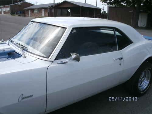 FOR SALE BY OWNER: ADULT OWNED: 1968 CHEVROLET CAMARO. CAR IS GARAGE KEPT, WELL MAINTAINED AND IN EXCELLENT CONDITION. THIS IS A CALIFORNIA CAR WITH NO RUST.... CLEAN SOLID FRAME. CAR HAS A BRAND NEW FACTORY GM 350 ENGINE WITH COMP THUMPER CAM, WITH 479 LIFT INTAKE 465 LIFT EXHAUST. MSD IGNITION SYSTEM AND PLUG WIRES, EDLEBROCK HIGHRISE INTAKE MANIFOLD, 750 CFM DEMON CARBURATOR, THORLY HEADERS, DUAL FLOWMASTER EXHAUST, TRANSMISSION IS A TURBO 350 WITH B&M SHIFT KIT, HAS A 2700 STALL CONVERTER & B&M QUICK SILVER SHIFTER. REAREND IS 10 BOLT WITH 2:73 GEARS. BRAKES HAVE BEEN RECENTLY UPGRADED TO POWER DISC IN THE FRONT AND NEW BRAKES IN REAR AS WELL. IT HAS A HOWE ALUMINUM RADIATOR. CHROME FLEX FAN AND CUSTOM STAINLESS SHROUD. IT HAS A STAINLESS STEEL TILT STEERING COLUMN, NEWER CUSTOM VELOUR INTERIOR AND CARPET, NEW HEADLINER. NEWER BF GOODRICH TIRES WITH KRAGER SS WHEELS. PAINT IS NEW AND IN EXCELLENT CONDITION. THE CAR HAS BEEN SPRAYED WITH RHINO COATING IN THE ENGINE COMPARTMENT, TRUNK AND UNDERSIDE AS WELL. HERE IS A LIST OF SOME OTHER PARTS NOT LISTED ABOVE: NEW POWER STEERING PUMP, NEW STEERING BOX, NEW BATTERY, NEW SUNPRO GAUGES, SUNPRO TACH, NEW STARTER, NEW SHOCKS, NEW LOWER BALL JOINTS, NEW CHROME MASTER CYLINDER AND BOOSTER, K&N CHROME AIR CLEANER AND FILTER, CHROME WATER PUMP AND MANY OTHER MISC. CHROME PARTS. CAR HAS A STEEL COWL HOOD, AND REAR SPOILER. HAVE MANY RECIEPTS. CAR IS APPRAISED AT $35,000 LOOKING TO GET $28,500 WILL ACCEPT REASONABLE OFFER. ****VERY NICE CAR !!! COME AND INSPECT**** CAR IS LOCATED IN SOUTHERN ILLINIOS 62906 FEEL FREE TO EMAIL ME WITH ANY QUESTIONS OR CALL JERRY BOYD AT 1-618-697-0996. ALSO HAVE MORE PICTURES.