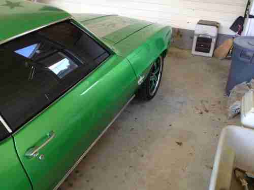 1969 Camaro Restomod SS. LOS California built car! Started life as a V8 coupe automatic then was professionally restored to an SS in 2010. Was in California all its life until it made its way to Alabama in December 2011. Super solid car laser straight. Original floors, trunk pan and quarters. This car is a real head turner!! Not 100% sure but was told the paint is the GM color code for the 2010 Camaro. Couple minor flaws in the paint (see pics) Took best pics I possibly could of underside due to not having a lift. I purchased this car and drove it 300 miles home, and has only been driven about 100 miles since then. Has Been stored in garage since purchase. I have added a few things to it: Rims and tires 18" front 20" rear, upper and lower control arms, eibach springs and new shocks. All new interior except dash pad, seat belts and headliner they were in great shape. Vintage A/C. All gauges, lights, turn signals work as they should. Clock, Heat and A/C work. Horn does not work. No radio as i would rather hear the engine and exhaust when cruising. Included is an original owner California title that was given to me in the sale. SOLD AS-IS NO WARRANTY Don't want to sell but family issues have forced me to. Don't miss out on owning a piece of classic muscle car history!! SO GET THE BIDS GOING!!