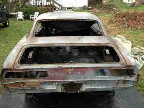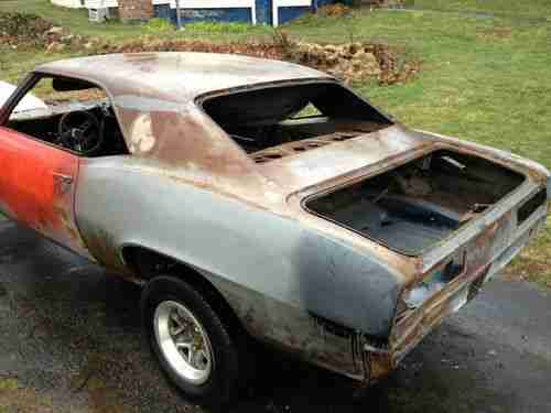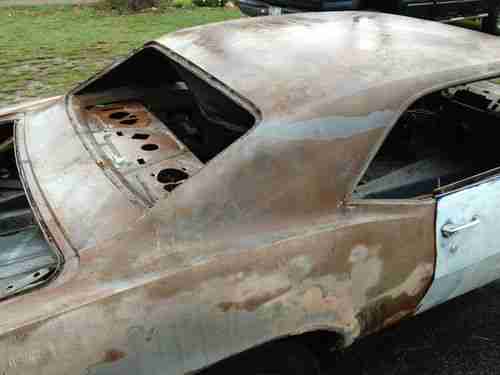 As you can see this is a 1969 Camaro roller that needs to be finished. Trunk pan and one peice floor pan installed a few years ago. Needs quarter skins installed (which are included).This a a V8 car from the factory, non X code with front drum, indicating it was likely a 307 or 327 auto on the floor. Have quite a few parts that are not on the car: Header panel, radiator support and frame, rear wing, front fenders, hood, lower valance with lights and fender aprons. Has no title but I can provide a bill of sale or registration upon sale. No reserve so it sells for the highest bid.