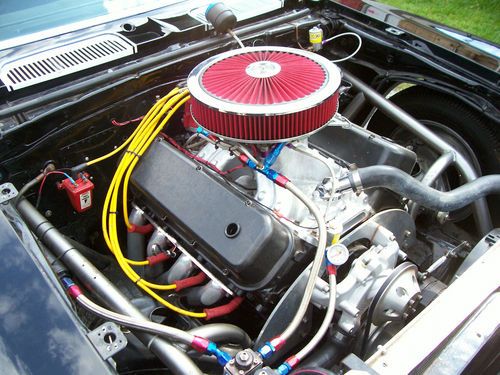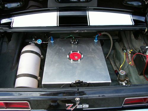 This 1969 Camaro has a fresh 462 cid Big Block Chevrolet (.030 forged pistons , Edelbrock Victor Jr intake , Holley 850 carb , Ceramic coated Hooker headers , MSD ignition , Competition Cams camshaft ,ect...) that runs on Pump Gas ! For a little extra go , it is equipped with a Zex 150-300hp Nitrous Oxide System ! Cooling consists of a New Weiand aluminum water pump , a High Performance big aluminum radiator with an aluminum shroud and dual 16" electric fans !