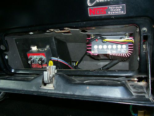 The suspension in the front is mostly stock , with the exception to the Moroso Trick Springs and travel limiters . The front subframe is stock except for a modified crossmember , an aftermarket rear-mount rack and pinion ,and an aluminum motor plate / mid-plate mounting the drivetrain to the subframe . The rear suspension is a custom ladder-bar setup suspended by Competition Engineering Coilover shocks . The front and rear frames are tied together by Competition Engineering subframe connectors and a custom NHRA/IHRA inspectedl rollcage legal to 8.50 .The rear coilovers are mounted to the cage in the rear , which extends all the way to the rear of the car . The front subframe is connected to the cage by supports that extend through the firewall into the interior .