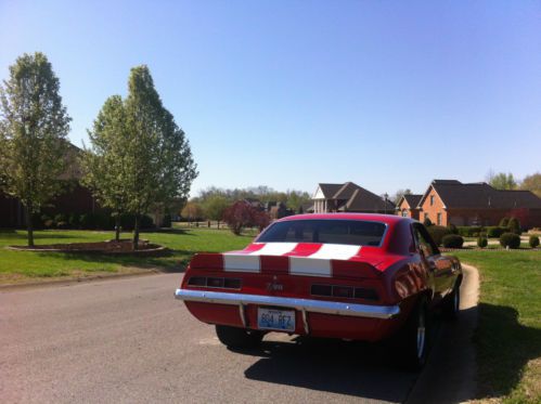 Up for sale is my beautiful 1969 Camaro Z28. I hate to sell but I need the room for one of my newer projects. 69 Chevy Camaro Z28 350 ballaced and blue printed 550hp guide with 5500 stall, 4.10 12 bolt with Moser axles and spool, Caltrack bars drags shocks, 3 inch exhaust with flow masters stock interior in super condition. All the carpets look like new still and the dash still looks like new. The seats are all great except for the passenger headrest, its starting to crack. where it was positioned in the garage the sun was hitting that spot. Absolutely no rust anywhere.The car is 99% done. It was restored 14 years ago by previous owner and garaged ever since. The car has never been in the rain or snow. I drive this car daily when its nice out sometimes all day. No dents no scratches anywhere. Mickey thompsons tires on it all around. Its a beautiful car and no one is going to be disappointed. $500 non refundable deposit or pick the car up within 24 hrs unless we agree to something different over the phone....Car is for sale locally on Craigs list aswell so if i sell it on there ill take the listing off. please feel free to come see the car in person or test drive at anytime.. thanks, call or text colin..270-484 7008.