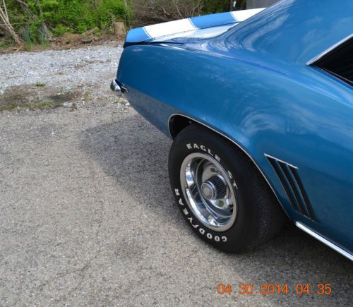 EASY STARTING AND STRONG RUNNING 350 ENGINE NICE LITTLE CAM FOR AWESOME SOUND AND POWER MALLORY IGNITION BOX MALLORY BILLET DISTRIBUTOR HOLLEY ALUMINUM INTAKE EDELBROCK CARBURATOR HEADERS BRAND NEW FULL DUAL EXHAUST...SOUNDS AWESOME!! SMOOTH SHIFTING 4SPD TRANNY 10 BOLT POSI REAREND POWER STEERING CORRECT 4SPD CONSOLE WITH FACTORY GAUGES ALSO SET OF MORE ACCURATE AFTERMARKET GAUGES....THESE ARE CURRENTLY HOOKED UP STEEL COWL HOOD FRONT AND REAR SPOILERS NICE 15" X 8" RALLYS WITH WHITE LETTERED TIRES EXCELLENT CHROME BUMPERS AND TRIM FULL SET OF FACTORY SEAT BELTS EXCELLENT BLACK BUCKET SEAT INTERIOR EXCELLENT SEATS EXCELLENT 4SPD CONSOLE WITH GAUGES NEW DOOR PANELS NEW HEADLINER NEW CARPET NEW SILL PLATES NEW 3 SPOKE SPORT STEERING WHEEL NEW WIPER MOTOR SUPER SOLID TRUNK AND SHOCK TOWERS DETAILED WITH SPLATTER PAINT SOLID FRAME RAILS UNDERSIDE SOLID ROCKERS NEW REAR FLOOR PANS SOLID TRUNK DROP OFFS SUPER SOLID AND STRAIGHT BODY..DOORS, HOOD AND TRUNK OPEN AND CLOSE GREAT NICE BEAUTIFUL LEMANS BLUE PAINT WITH WHITE Z STRIPES.........PAINT IS SLICK AND SMOOTH WITH DEEP SHINE AND OVERALL LOOKS VERY NICE AND SHARP THIS IS A VERY SHARP 1969 CAMARO WITH Z/28 TRIM, STRONG RUNNING 350, 4SPD, PS, SOLID STRAIGHT BODY WITH BEAUTIFUL LEMANS BLUE PAINT WITH VERY NICE BLACK INTERIOR...... LIGHTS, TURN SIGNALS, HEATER, DOME LIGHT ALL WORK AS THEY SHOULD, CURRENTLY THERE IS NO RADIO INSTALLED . NICE TURNKEY SHARP LOOKING 1969 CAMARO READY TO CRUISE RIGHT AWAY.... BE SURE TO CHECK OUT THIS LINK TO MAY MORE DETAILED PICTURES OF THIS CAR :