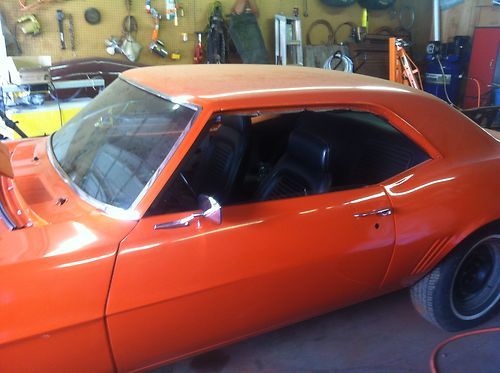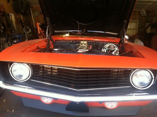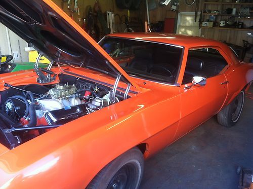 This is a 1969 Camaro I started building about 8 years ago. Most of the sheet metal is new front clip tail light panel trunk pan left and right floor pans new right side quarter left side quarter is 80 %. All new front suspension rear springs. The engine is a built 396 has Holley carb Headers and new exhaust . I painted the car in my garage with single stage and its not perfect. New bumpers grill to many new parts to list. Manly it needs interior finished no instrument cluster also needs new underdash wiring harness has been chopped on over the years. Have just about all new wheather stripping new windshield and back window also have new door panels . Was making Copo clone finished right it would probably bring 50 to 60 thousand. Have another project and need to sell this one. You can check out a video of it running on YouTube under Huggerorange427.