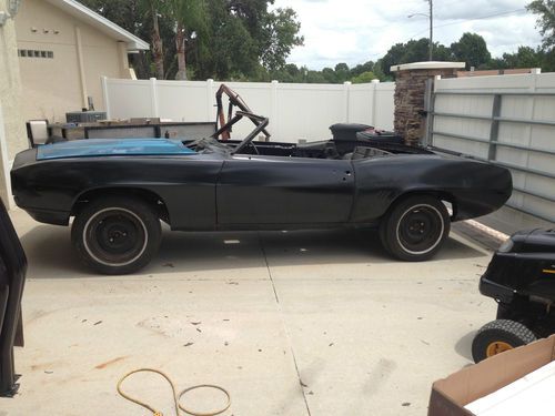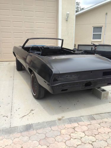 This is a 1969 FIREBIRD CONVERTIBLE titled body . With all 1969 CAMARO sheet metal and dash. TITLED AS A 1969 FIREBIRD CONVERTIBLE. was being built at a 69 Camaro ss/rs clone , pro-touring. Has new floors, frame rails, and all sheet metal .Most of all the hard work is done but NOT complete as seen in pictures . Has mini tubs installed and will accept an 335, tire on the rear.14 -1/2 inches clearance. Body is square, NOT paint ready. Is set up for t 56 trans. Not included . NO MOTOR OR DRIVE TRAIN. Sold as a roller NO OTHER PARTS AVAIABLE. Will post more pictures later when it stops raining.