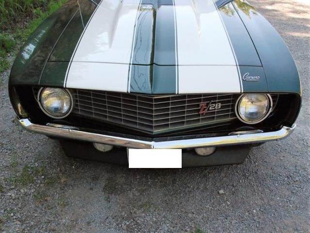 Contact only by mail : imkallenwainwright@netcmail.com 1969 Camaro Z28 X77. Total restoration completed in 2015. I would consider thisan “amateur restoration”. However all work was performed by local area professional shops. VIN 124379N641163 TR 723 Standard Dark Green Interior, console gauge package. 57 57 PNT Fathom Green Exterior 05AManufactured 1st week May 1969. Original born with DZ302 block Norwood, OH built1st week May 1969 rebuilt by Don Burlington with correct smog equipment. Bored.60 thousand over. 11.2:1 compression ratio. 1969 heads with 64 CC chambers. Car prefers race quality fuel. M22 Muncie Rock Crusher close ratio. 410posi-traction rear end. Manual steering, original 2 piece disc rotors, drumrear. Original AC Delco AM radio. Cowl induction with new parts but not working properly.