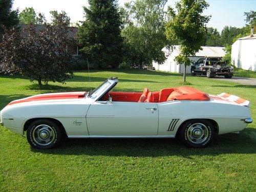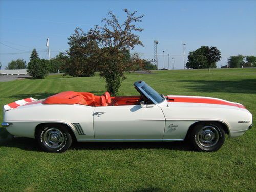 Camaro Convertible Z11 SS . Pace Car. 350 V8, automatic,PS, PB, A/C,console, tach, clock, buckets, dual exhaust. Complete restoration 1969 Camaro Z-11 SS Pace Car Convertible. This car is 1 of 3675 produced under the production PACE CAR CODE Z-11. All of the proper #'s and cowl tag plate codes verify the authenticity of this original Pace Car. The rally sport equipment, including vacuum operated headlight covers and floor console gauges are functional. The orange hounds tooth int. is brand new. Call with any questions. 315-778-2506