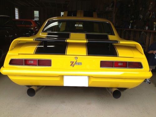 1969 Chevrolet Camaro Z28 Clone. Has new 632 Engine. Runs on Pump Gas. 12 Bolt Moser Rear. 400 Automatic Turbo Trans. Traction Bars. Houndstooth Interior. Rotisery Restoration. 2010 Corvette Velocity Yellow Paint Color.