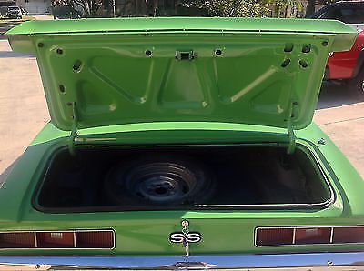 This car has been somewhat refreshed over the past 5 years, car originally came from Florida, New interior kit installed but the headrests need done yet. Motor has been stroked to a 383, runs great. Transmission is a Muncie M21 4 speed, and rear end is a posi unit with 3:73 gears. It's been built to be a driver, not a show queen, but turns heads everywhere it goes. It's not a real SS, just has the badging. It still needs some stuff finished like the heater controls need replaced, windows need adjusted but roll up and down just fine, headrests need recovered, has a radio but not hooked up, New Grant GT steering wheel but the horn isn't hooked up, needs a speedometer cable, tires should be re-balanced, etc. Nothing that hampers with getting in and driving it. Paint is decent for what it is, very shiny, just not a show car, a definite driver! I'm sure there's plenty that I'm forgetting. I've got the car for sale locally so I reserve the right to end the auction early. Please ask any questions you might have.