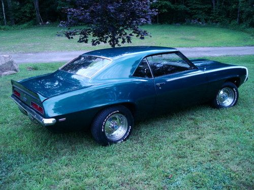 1969 chevy Camaro,350 v8 engine runs very well with no smoke or ticking,4 barrel carb,headers and dual exhaust,4 speed transmition,10 bolt posi,ps.green interior is in good condition has minor wear on edges of door panels,no radio.nice green paint on exterior with white hockey stripe,cowl hood,rear spoiler,there is no visible rust dents or scratches on paint look good not a 25k show car but a nice driver.cragar sst wheels with good tires.all lights, wipers ,e-brake all work.i have a open nh registration from previous owner maine is a non title state so I have no title but the reg should get it titled in your state but check with your local dmv before bidding on this car.i would like to sell this car this week so lets make a deal!!!!! 207-206-2167