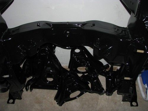 The front end is all rebuilt and new, ball joints, tie rods, new bearning and races ,and front end alignment, over 1500.00 was spent on just the front end. The sub frame was taken off disasembled sand blasted and painted with KBS, then every bolt and bushing was replaiced, new coil springs shocks, even the mounting bushings for the frame replaced. It has a new aluminum radiator with duel elect fans. The engine compartment is show quality. The rear end is running 3:73 posi. car runs about 2800 rpm at 70 mph.