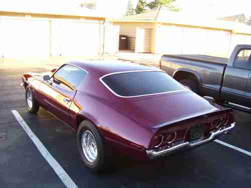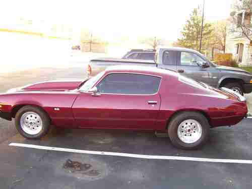 1970 chevrolet camaro,350 v.8. ,4 speed,engine built with cam was told by old owner 475 h.p.,headers with flowmaster exhaust,large gear in rear end , holley carb,temp control cooling fans ,runs at 200f at 95 temp outside, chrome alt,billit style valve covers holley breather, this car is fast and very tight,weld wheels with stinger p275/60r15 rear and summit 165r15 front,am/fm cassette pioneer supertuner sounds great!car is very solid underneath dont see any patchwork at all under car and NO RUST , tinted windows, body is very nice with lazer straight brandywine metalic paint,get compliments all the time on paint at shows ,inside is very nice,this car is a true show piece that must be seen over 20k invested to build , have original door panels that go with sale ,any questions please call 773-416-6499 thanks