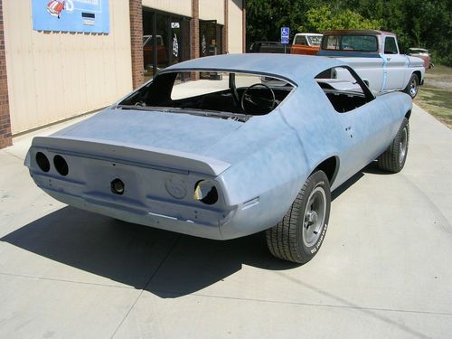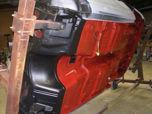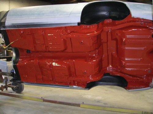 BODY: The body is the original sheet metal with very little body filler. It has a few small pin holes in the floor. It has never been wrecked. The underside has been stripped to bare metal and painted back to the original red oxide. The exterior is ready for paint. The original color is Code 48 Dark Green Metallic.
