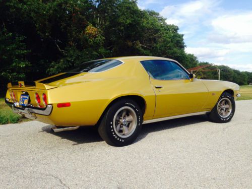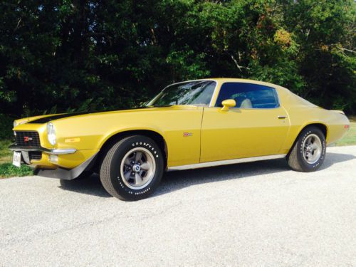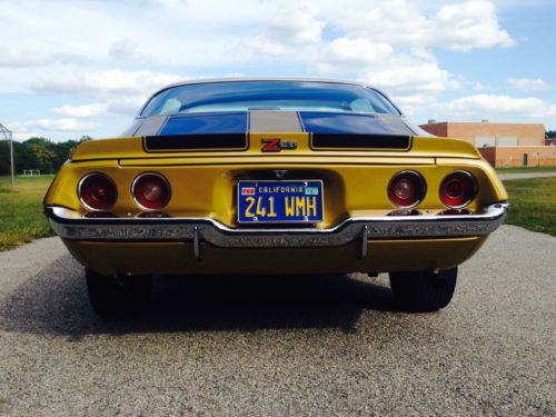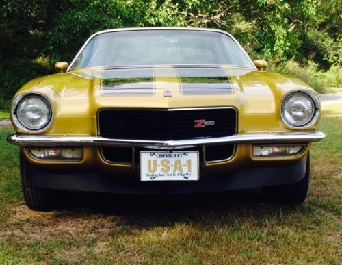 Up for sale is my 1971 Camaro Z28. Car was a rust free CA (built in CA and spent most of it's time there til 1999). It still retains all of it's orig. sheet metal & trim w/ one older professional repaint. Car was disassembled, stripped and resprayed the orig. placer gold w/ correct blk stripes. All the gaps on the hood, doors and trunk are as they were in 1971. Orig undercoating remains underneath. There are a few small bubbles that surfaced not long after it was painted on the lower quarters, but have not gotten any worse over the yrs. Orig. #'s matching motor was removed a few yrs. ago, rebuilt and has since been stored. The orig. shortblock is .30 over, balanced and blueprinted, forged pistons, orig. LT1 rods, cleavite bearings & ARP bolts. The current motor is a rebuilt 1969 350 block w/ the orig heads and intake from the #'s matching motor, 350/350 hydraulic cam which runs very strong. Ceramic coated headers lead into correct style Z28 exhaust. Trans is a period correct close ratio m21 (non #'s) and the rear has been upgraded to a 12 bolt (non #'s) 3.73 posi. Body bushings and frt suspension are all upgraded to polyurethane. New springs frt and rear. New period correct Goodyear polyglas f-60 tires. Orig. Z28 rims have been powder coated. Interior is mostly orig. & in excellent cond. Saddle cloth seats were redone at one pt. Tach and amp guage are not working. I have all orig documentation for the car. Orig window sticker, build sheet, owners manual, financing paperwork and protecto plate. I wanted a clean 2nd gen to resto mod, but decided this car was to orig and unmolested. Only 4 owners since new. Car is a driver, not a trailer queen. It has been on the Hot Rod Power Tour two times (2009 & 2011). Turn key and drive anywhere. Too much to list. Must see. This is a 43 yr old car & I have tried to be as accurate & honest as possible in the description. I encourage you to come & see the car as you will not be disappointed. This is NOT a clone, it's a very well documented real Z. Additional pics/info available upon request. "SERIOUS INQUIRIES/BIDDERS ONLY" |