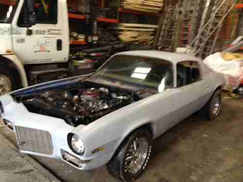 71 z28 Camaro original 350 4 speed car all new sheet metal new quarters new floors new trunk pan new rear tail pan new header panel fram and subframe have been scrapped and coated in por15 car has a runnin 350 4speed manual with a 10 bolt posi rearend the motor has been refreshed with new gaskets and chrome valve covers and air cleaner and edlbrock carb car has a new gas tank new fuel filter new cap rotor plugs and wires fires up first turn runs drives and stops car is very straight and needs about 10 hours of finish work for paint car has been garaged sence ive owned it and is in 2k primer very solid car the car is not a numbers matching car i do not have the front or rear bumper new ones are 125$ each and also missing chrome window trim interior needs a new carpet and door panels my panels are in rough shape car is going to be sold with no Reserve buyer is resposible for shipping but i will do my best to help with the shipping process thank you -TED