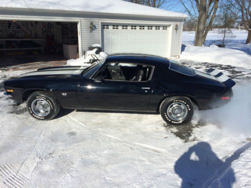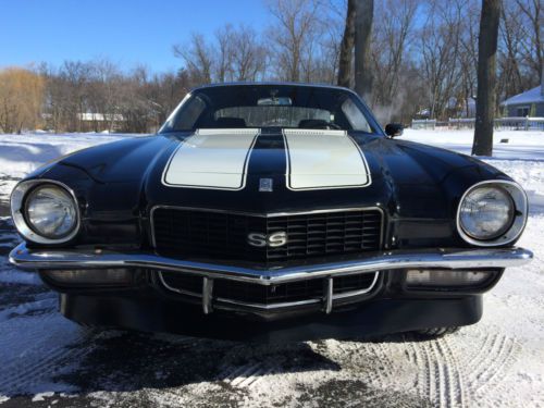 1971 Chevy Camaro SS. This nearly original Camaro is a real SS. Not a clone. It has a great looking paint job. An excellent running 5.0 V8 engine with a 4 barrel carburetor, headers and dual exhaust. Original Turbo 350 automatic transmission that shifts great! It has brand new tires freshly balanced and installed. The brake pads and rotors have been replaced with new as have the wheel bearings. The charging system has also been replaced including the battery, alternator and regulator. The front coil springs, the rear leaf springs and all 4 shocks have also been replaced. New fuel pump. All new rubber seals for doors and trunk lid.