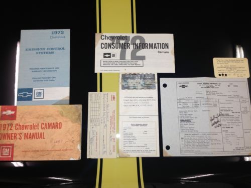 1972 Chevrolet Camaro RS split bumper up for auction. Only 28,678 original miles and is documented two owner car. Included with the car is the protecto plate and original bill of sale. The camaro still has it's original number matching drive train. The exterior has one repaint in it's original color and the paint is immaculate. I have pictures of the car before paint to show there was no rust or bondo before repaint. The interior was all original and in magnificent condition, except for the headliner. A new header was professionally installed with original equipment material. This is a turnkey car that needs nothing. The car is available to be seen by appointment. Please email or call with any questions. Thanks Joel 610-301-7889