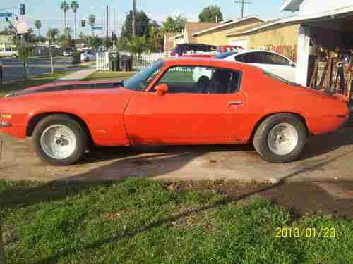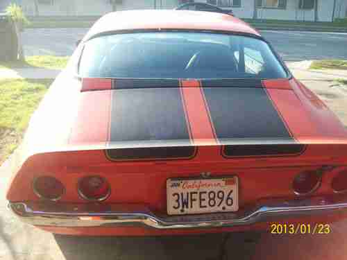 I am very pleased to bring to the market place this 1972 Chevrolet Camaro RS/Z28 re-creation. This American muscle car is powered by a matching number 350 motor and a turbo 350 trans. This car also has a 10 bolt rear end, front dish brakes, factory air conditioning, and power steering. I found this car in a storage unit in Lancaster Ca. where the car had sat for 14 years.This car runs and drives great. The interior is in very good condition. I am selling this car as is. Please feel free to contact me with any questions (714) 706-2168. You are encouraged to come and inspect the car before you bid. I will be happy to arrange affordable shipping to your door. Thank you and good luck bidding. (714) 706-2168