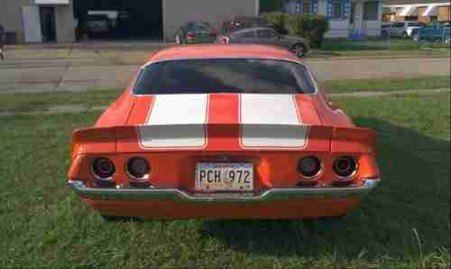 1972 Chevy Camaro with LS 1 Motor, T56 Transmission - Standard 6 Speed, 411 Rear End. Car was dino'd at 425 hp at the rear wheels. New heads, intake, cam and headers from Fast Flow were installed to achieve the 425 HP. March Industries Serpentine Belt Pulley Set. Rock Valley Fuel Tank. Griffin Radiator. 4 Wheel Disk Brakes. Exterior is Orange with White Racing Stripes and interior is Black. Awesome stereo system! Frame off restoration, have pictures to document. Fast Flow Technologies Heads, Intake & Cam. Call Joe at 504-228-6666 if you have any questions.
