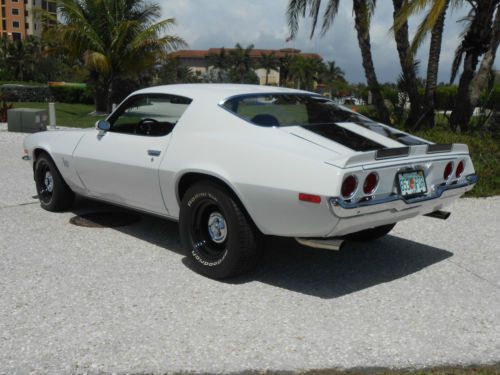 1973 Camaro White with Black Stripes, Crate Engine from BluePrintEngine 450HP, Auto 350 Trans, Ceramic Coated Headers and Duel Exhaust The DYNO Sheet 449 hp and 488 ftlbs torque Crate Engine from Blue Print Engines Car is in great shape the body is very straight. The black strips are painted and the car has a very nice clear coat. There are some minor nicks in the paint but people don't notice them unless i point them out. There is a small dimple in the hood and the fender A littte rust on the driver side door. The front head lights are Real HID Projector Lights with the Blue Halo, and at night you would think your driving a new car. please feel free to call or email with any question thanks John 239-850-828NINE · 383 450HP/488FTLBsTorque. · 750 Holly Carb · Dyno Sheet from BluePrintEngines 449.6 HP/ 487.5 Torque · 4 bolt main with 1 pc rear seal · Balanced · Roller Cam/Roller Rockers · Aluminum Heads · New Head Line · Hurst Dual Gate · New Front Window · New Carpet · New Dash · New Front and Rear Windows · Rebuilt 350 trans with shift kit · 3200 YANK Stall · 3:73 Posi-Traction · Rebuilt Rear End · On Apr-21-14 at 05:41:13 PDT, seller added the following information: SHORT VIDEO CLIPS ON YouTube YouTube PrimeraRSTKD if you need more pictures or info call me any time 239-850-828nine I can text you more pictures of any part of the car Thanks John On Apr-26-14 at 08:04:27 PDT, seller added the following information: Lowered the reserve next bid takes the reserve off CAR WILL SELL SUNDAY YOU ARE GETTING A LOT OF CAR FOR THE MONEY Good luck to all |