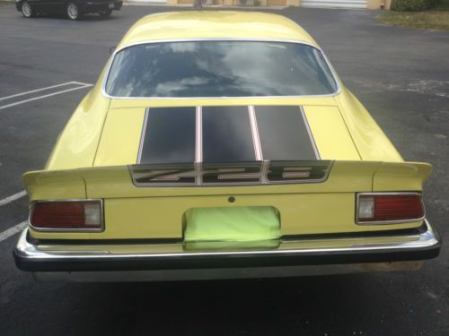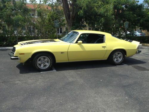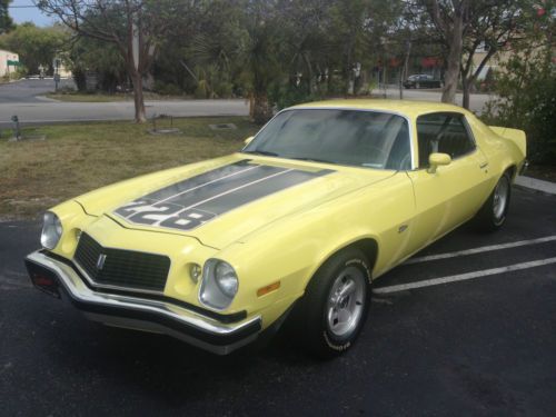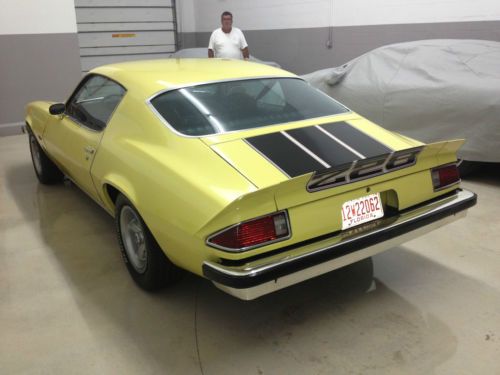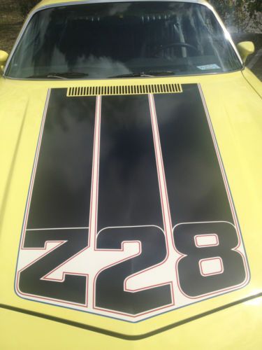 1974 Chevrolet Camaro Z28 replica, H code car, 2 barrel carburetor was replaced with correct 4 barrel, un-restored, rust free, beautiful car. Runs great, engine run strong, smooth and cool, a/c works good but will need to be recharged, P/S, P/B front disk brake. Original paint is beautiful but not perfect, some minor imperfections not noticeable from 2 feet away. Original rims, correct tires in good condition, Interior in great shape, even the cassette player works. Engine compartment is original and everything is there and works as it should, again, H code 350 V8 now with 4 barrel Rochester carburetor. Again no rust anywhere including trunk, undercarriage, etc. Please understand this is a 40 year old car with no warranty, I recommend interested party inspect car before purchasing it as I am unable to warranty it. Ask ALL questions before making a decision, not after buying, I wll not answer questions that should have been asked by serious buyer before committing to purchase. I have clean tile on hand. Car will not be release until funds clear. You will not be disappointed with this temperature control, garage kept, car. No written or implied warranty.