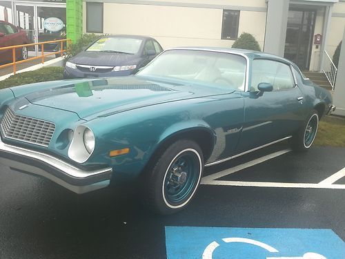 Up for auction is a 77 Camaro in very nice very original condition. This car has a lot of eye appeal and gets a lot of attention. Its a very nice driver the paint on it is very nice all panels are metal no patches or bondo. fender and quarter wells are perfect frame is solid engine and engine bay are original engine needs paint but is very clean. trunk is clean no rust. there is a small dent on the top of the right rear quarter (see pic) that the factory spoiler will completely cover which I have and will include spoiler needs to be painted, it also has two small chip in the door from my wife opening her door on it, easily touched up. the right windshield pillar is just starting to blister very minor. This car was traded into a Mazda dealer by original owners daughter who inherited the car. She told me her mom loved that car and always garaged it. it has the original am radio in it but doesn't turn on everything else works. I installed the brand new wheels and tires and installed rear air shocks. I have original wheels and tires also going with the car. These years are becoming more and more popular and still affordable for now to the average person who wants a antique Camaro but doesn't want to spend crazy money. I reserve the right to cancel auction at anytime. email or call me if you have any questions. 401-829-2629 Thank you