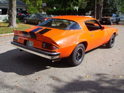 1977 Camaro Z-28? Factory 4-speed, Aluminum Super T-10, 10 bolt 373 posi-currently has a strong running 454 big block runs and drives very well. F-41 suspension. Steel hood, pretty nice body. Paint is good driver quality. Has full gauges with tach, tilt wheel, power windows, power disc brakes, don't know for sure if it's a real Z, but it does have all Z components.