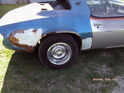 Up for sale is a 1979 camaro , 305, AT, PS, PB , AC, 6 years ago had the engine running for a few minutes sounded good, car needs a complete restoration, floor needs about four little spots fixed , trunk is good , frame rails have been repaired and are in good shape, has frame connectors, have all the windows for it, brand new steel cal hood that fits very nice, dash in car is in very good shape, have most of interior , seats need to be redone, do not have carpet or panel for back window, the car DOES NOT HAVE THE RALLY WHEELS ANYMORE, I have junk wheels and tires to move it with,the worst rust that it has is what you see in the pictures, do have a clean and clear title , also have extra trunk and spoiler to go with it , have all the trim and rear bumper and lights. $500.00 PAYPAL within 24 HRS of end of sale, the rest in cash on pickup.. AS IS NO WARRANTY, NO SHIPPING, LOCAL PICKUP ONLY. ANY QUESTIONS CALL RON @ 7SIX5 717 4803. THANKS