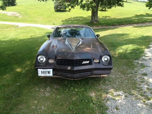 You are bidding on a 1979 chevy Camaro z28. The car runs and drives and stops excellent. Options on the car include power steering, power brakes and air conditioning. the factory air conditioning box is in the trunk because I was planning on putting a new evaporator in it but I never got around to it. the condenser is still in the front with the ports covered over with tape so that no dirt would get inside. I do not have a compressor for the car. the transmission shifts great and the car always starts right up. it has a newer edelbrock carb on top with fairly new belts and hoses. the car has no major leaks and has been very reliable for me. I drive it all over. this car is not a rust bucket! any rust on this car is very minor. the car does obviously have normal dings and dents and the paint is faded but nothing major. rally wheels have just been sanded down and painted with new center caps installed and car has very good tires. the interior does need a drivers seat cover a headliner,could stand some carpet and some other minor work but the dash is not cracked. all glass is good. there is a newer pioneer radio. very good driver car but would make an excellent project car if you wanted to make a show car. the reserve has been set at a very reasonable number for the condition of this car. buyer will be responsible for shipping.