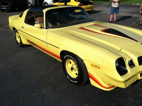 This car is in very good condition no patch panels that I can tell all original solid trunk doors some minor bubbling at the bottom see in pixs.Everything works including the factory air (134) this car has not been hacked like most of this era.This car runs and drives great not a rattle trap .Motor has been rebuilt and has new BFG tires.Nothing leaks on this car including TTOPS.ABSOLUTLY NO OIL LEAKS!!!I have Had many 5K offer unfortunatly I need 6K to sell and the right person will buy this car when the see it .Has the original intake but a edlebrook carb has replaced the quadrajet Original Z28 #match.These cars are becoming more collectible by the day and to find one that has not been modified is even a harder find Good luck bidding car is for sale locally so I can cancel the auction call with any othe questions or to schedule a viewing 219-476-6303 The paint has a couple blemishes but very nice driver condition the underneath is solid has surface rust no holes or patches My intentions were to paint the botttom 4inches of the car to remove the minor bubbling but I found a different car (442) and I am focusing my time on that my reserve is less than 6K this is avery nice car for the money.